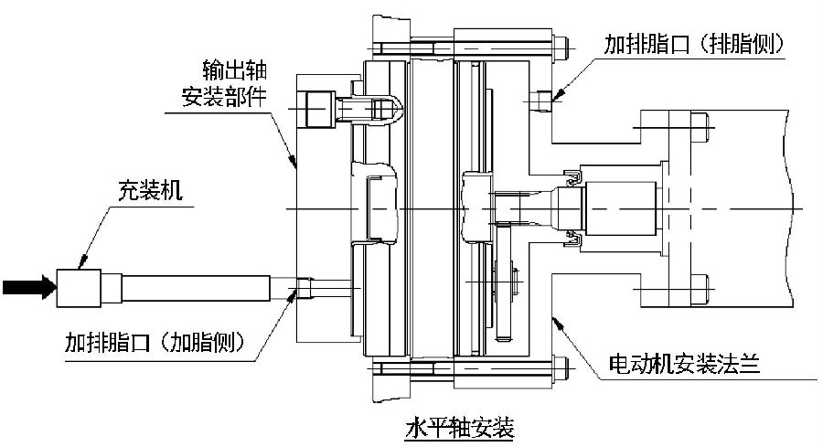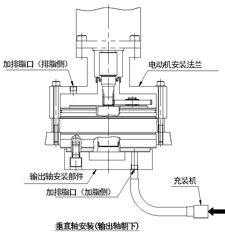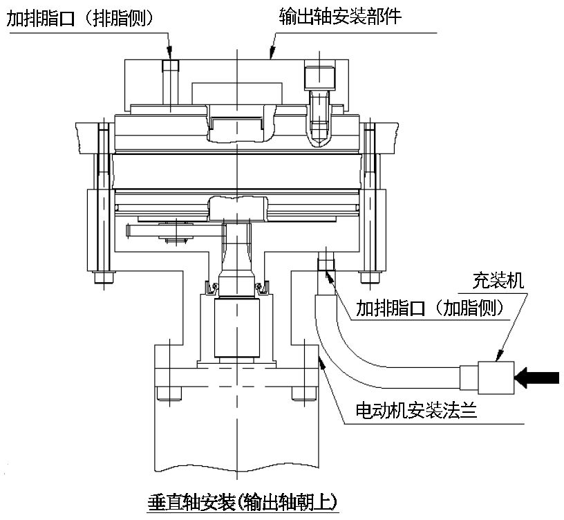 注意:安装充装机时使加脂侧处于下方,则空气不易积存在减速机内部,能够顺利地填充润滑剂。
