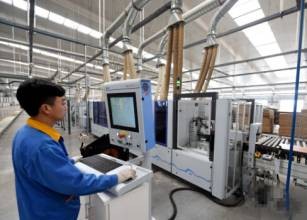 冷气开放的车间里窗明几净,两个员工配合操作一台4轴工业机器人,只见听话的机械手臂在辗转腾挪之间,很快...