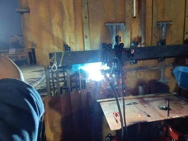 在张靖皋长江大桥南航道桥锚碇基础施工现场,一台特殊的焊接设备吸引围观